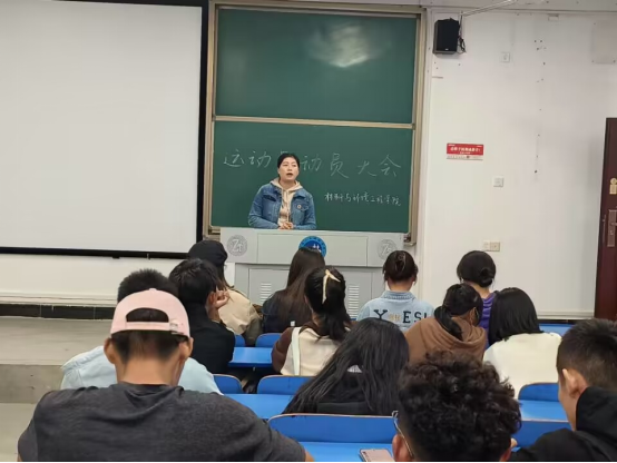 11月2日晚,材料与环境工程学院在致远楼211教室召开运动员动员大会,党总支副书记陈佩君、辅导员李璐玢以及全体运动员参加会议。