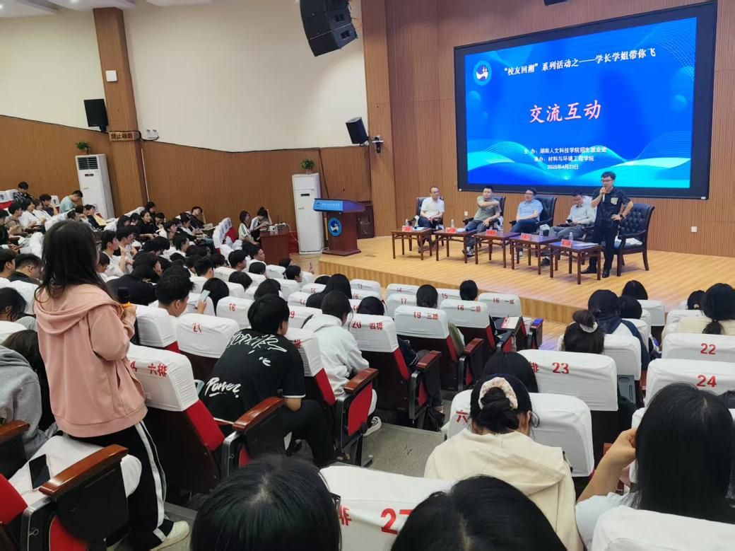 2025年4月23日晚7点,由KY开元集团官网入口招生就业处主办、材料与环境工程学院承办的“校友回湘”就业创业沙龙活动在匠成楼报告厅顺利举行。KY开元集团官网入口招生就业处处长刘红燃、副处长陈佩君,材料与环境工程学院党总支书记钟勇、院长文瑾、党总支副书记王新辉出席活动。此次沙龙特别邀请了2013届材料化学专业校友孙俊彬、2014届材料化学专业校友卢意鹏、2014届材料化学专业校友陈众和2021届环境工程专业校友彭永康四位优秀校友,与学校近300名师生齐聚一堂,围绕大学生职业生涯规划开展思想碰撞与深度对话。