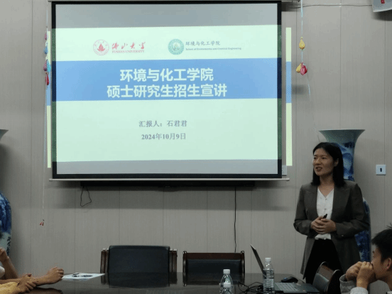 2024年10月9日晚上7点30分,材料与环境工程学院邀请佛山大学环境与化工学院石君君老师一行来KY官网进行硕士研究生招生宣讲。学院副院长陈红军及环境工程专业有考研意向的学生参会。讲座由石君君老师主讲,陈红军副院长主持。