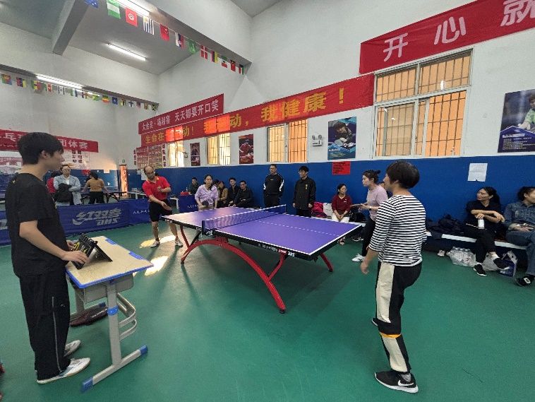 比赛过程中,材环院教职工们的精彩表现不断,他们以高超的球技和默契的配合,赢得了现场观众的阵阵掌声和喝彩。每一次挥拍、每一次击球都凝聚着他们对乒乓球运动的热爱和对胜利的渴望。最终,他们以优异的成绩,为材环院增添了荣誉。