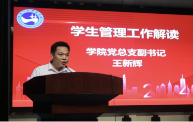王新辉详细解读了学院的学生管理工作及相关制度,叮嘱学生遵守校纪校规,共建和谐校园。副院长陈红军对学院的专业设置、课程体系以及未来的发展方向进行了深入讲解。