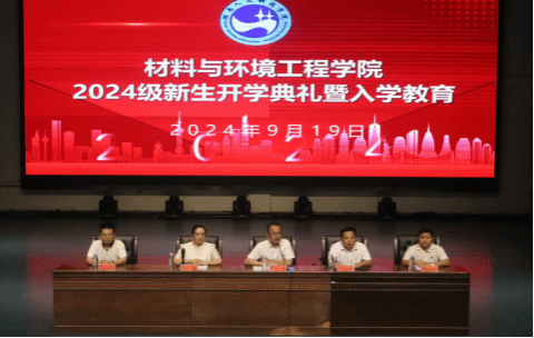 9月19日晚,材料与环境工程学院在逸夫楼音乐厅举行2024级新生开学典礼暨入学教育仪式。学院党总支书记钟勇、院长文瑾、副书记王新辉、副院长彭伟才、副院长陈红军,校友李迪、李景梁,教研室、办公室、教务办、学工办主任、辅导员、新生班主任、代理班主任,2024级全体新生参与。典礼由院党总支书记钟勇主持。