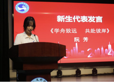 典礼在庄严的国歌声中拉开序幕。文瑾代表学院全体教职工欢迎2024级全体新生的到来。她要求新生同学们要尽快转变角色,适应融入大学生活;从专业的角度,科学的视野,就新生的大学四年如何规划提出了建议,具体要求及殷切期望。