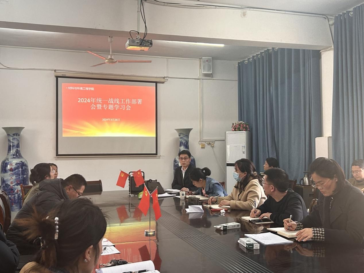 2024年3月26日下午,材料与环境工程学院在多闻楼410召开2024年度统一战线工作部署会,学院各民主党派和党外知识分子共同参会。党总支书记谭峰亮主持会议。