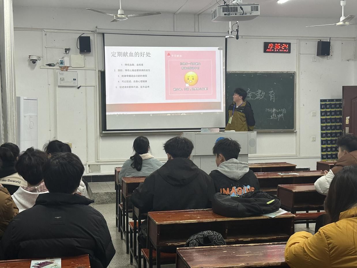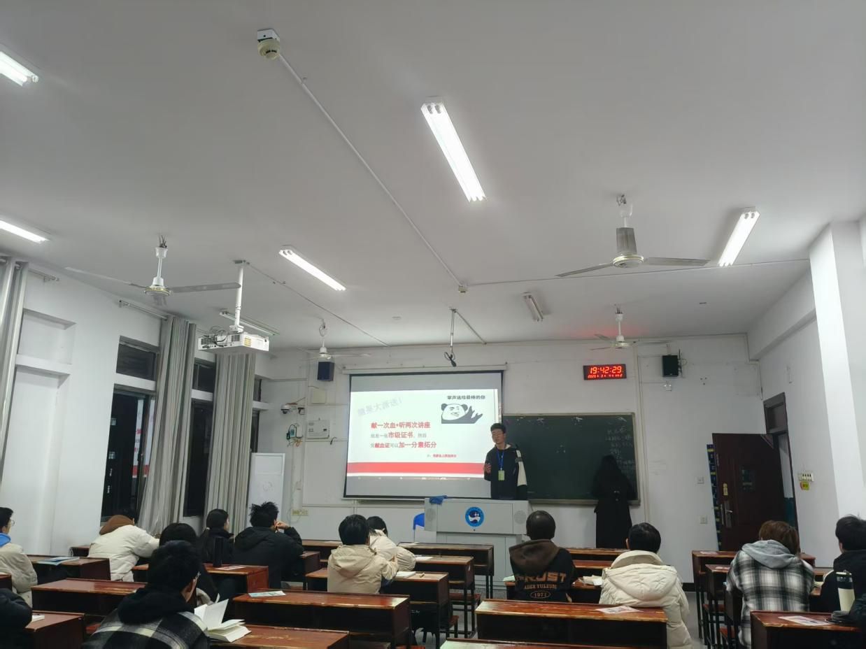 为了提高青年学子对无偿献血的认识和了解,进一步激发学生社会责任感,传递正能量,2025年3月4日晚,材料与环境工程学院青工部组织志愿者于致远楼教室开展无偿献血宣传活动。