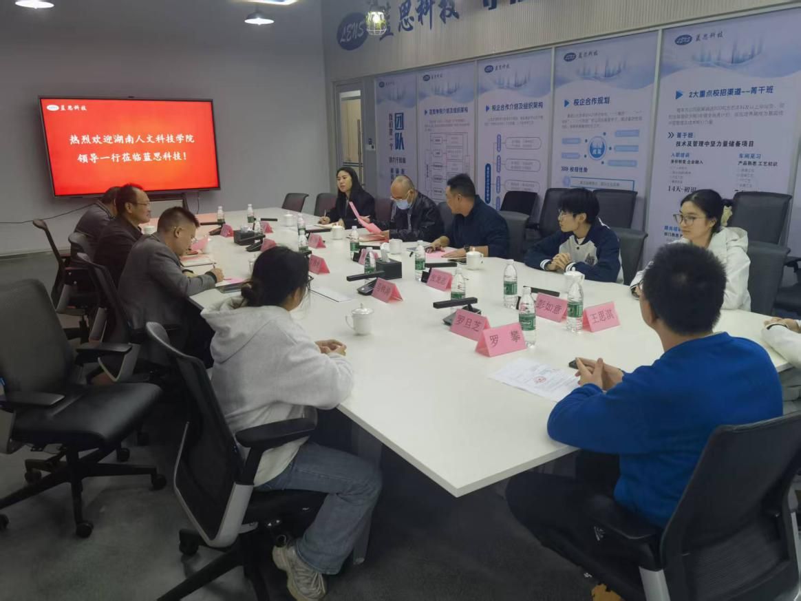 与走马观花式的产线参观不同,整个交流活动在园区会议室里以座谈会的形式展开。学院领导、老师们与企业代表,同学们围坐一堂,气氛轻松而恳切。会议伊始,企业代表首先向大家介绍了蓝思科技从精密玻璃制造向AI硬件核心领域转型升级的发展历程,并通过一系列产品与数据,展示了公司在消费电子、AI硬件等前沿领域的技术实力,让我们对未来的行业图景有了更清晰的认识。