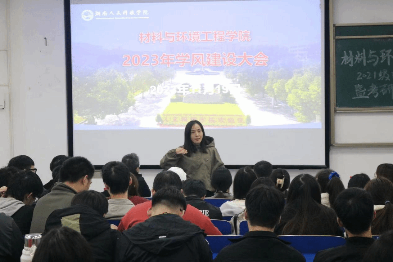 2023年11月19日,材料与环境工程学院在致远楼119召开了2023年学风建设大会。学院领导班子、辅导员陈昱、何欢、21级全体班主任老师以及学生和22级学生代表参会。会议由党总支副书记陈佩君主持。