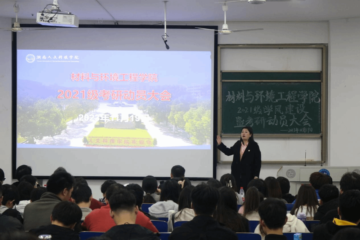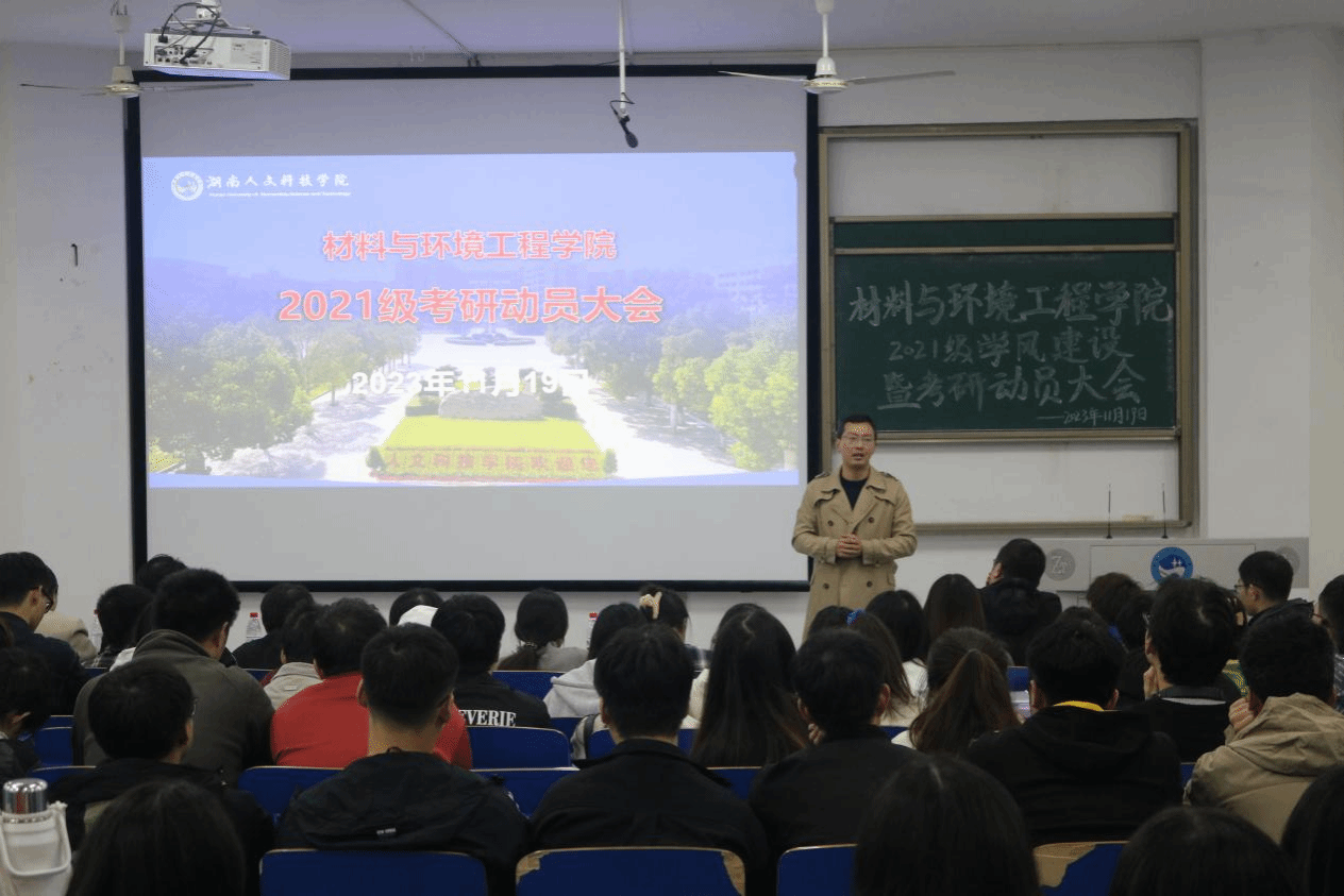 为激发考研学子的斗志,鼓舞学子考研热情,11月19日晚7:30,材料与环境工程学院于致远楼119召开2021级考研动员暨考研经验交流会。参会人员为学院领导班子、辅导员何欢、21级全体学生、班主任老师以及22级学生代表参会。会议由党总支副书记陈佩君主持。
