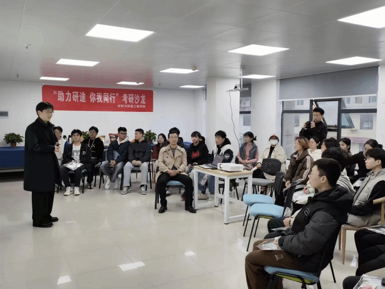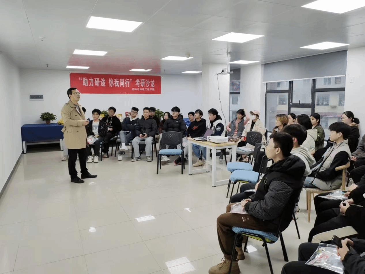 2023年12月8日,材料与环境工程学院组织了全体20级考研学生开展了主题为“助力研途,你我同行”的考研辅导沙龙活动。活动由考研班主任秦飞和考研联络员李雷震两位老师组织。