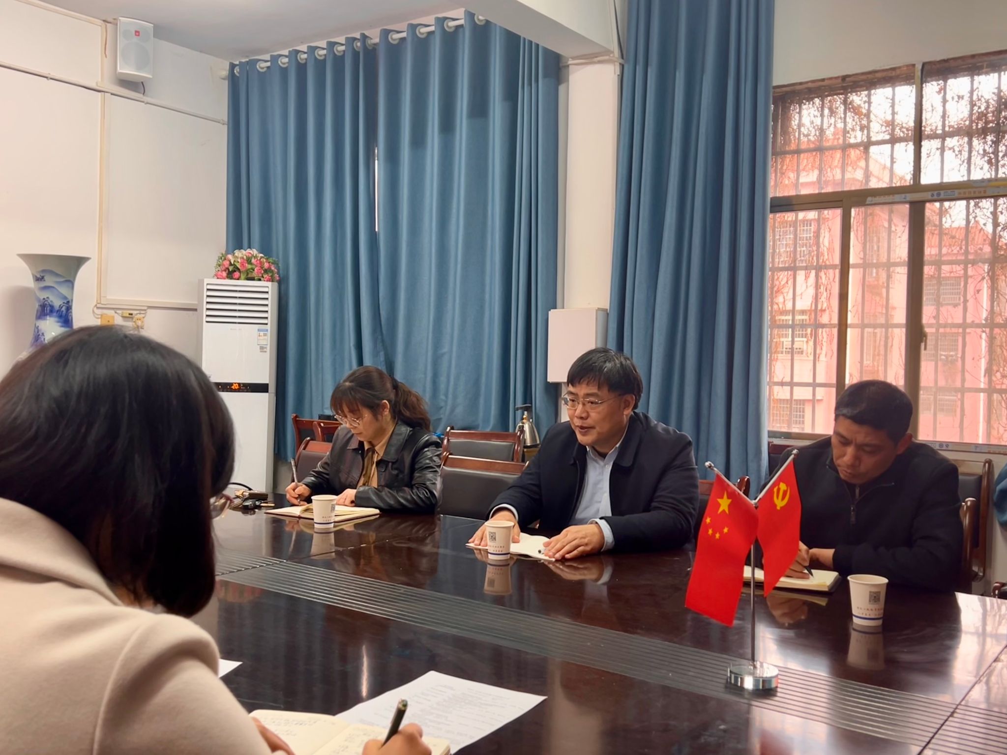 2024年3月18日,图书馆馆长彭辉一行来KY官网调研交流,院长文瑾与相关教师参加会议。