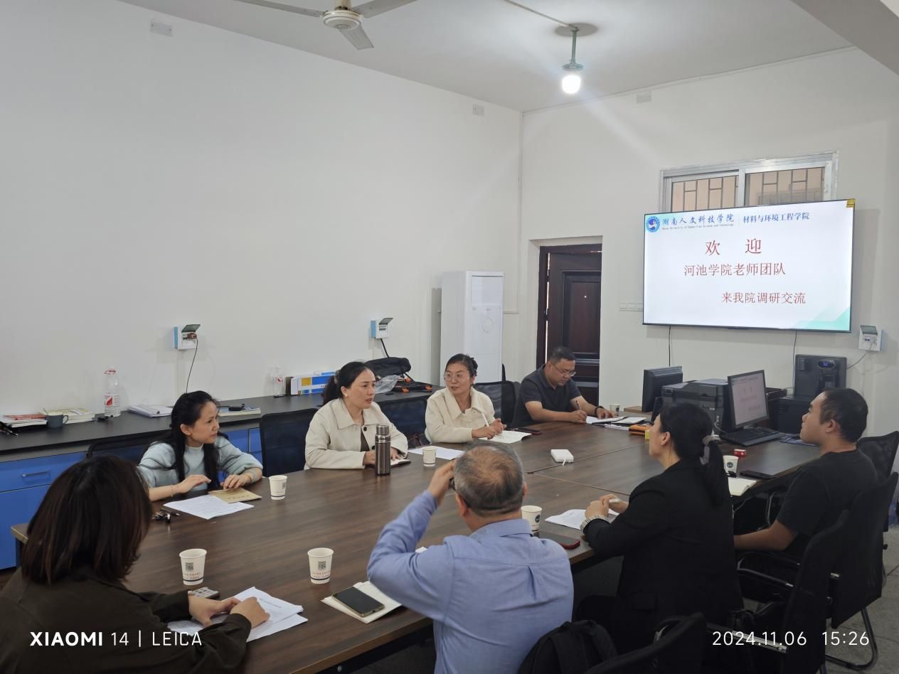 2024年11月6日,河池学院汤宏一行来到材料与环境工程学院进行座谈交流,双方围绕环境工程专业建设展开了深入的研讨和交流。此次会议在学院树艺楼205会议室举行。