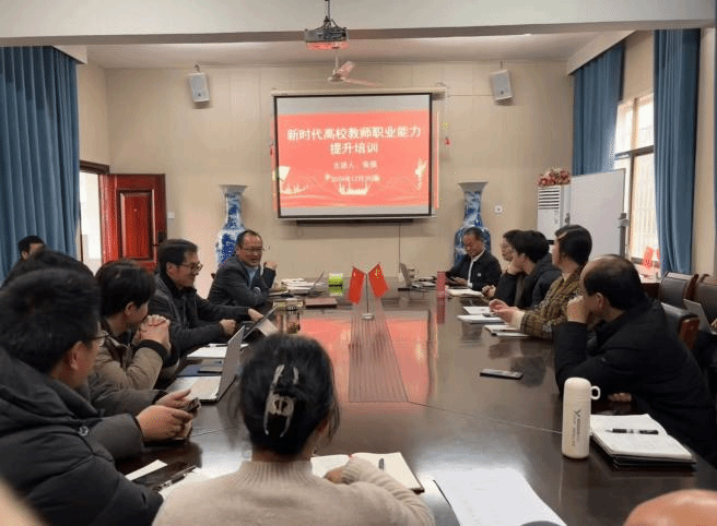 2024年12月20日,材料与环境工程学院邀请校党委副书记朱强为学院教师开展了主题为“新时代高校教师职业能力提升培训”讲座。朱书记从“什么人叫老师”、“老师应该怎样”、“争当一名好老师”三个方面进行了深入浅出的讲解,为学院教师指明了新时代背景下的职业发展方向和自我提升路径。