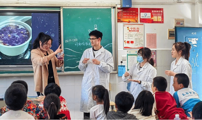本次活动在李晶同志与娄底第一小学四年级(四)班主任的组织和领导下,旨在通过变色小实验,播下孩子们探索科学创新的种子。在课程开始前,李晶同志用扎实的学术功底、诙谐幽默的语言对课程内容进行介绍,并强调了实验过程中需要注意的方式方法和操作规范性,其余党员同志在下方起辅助讲解作用。
