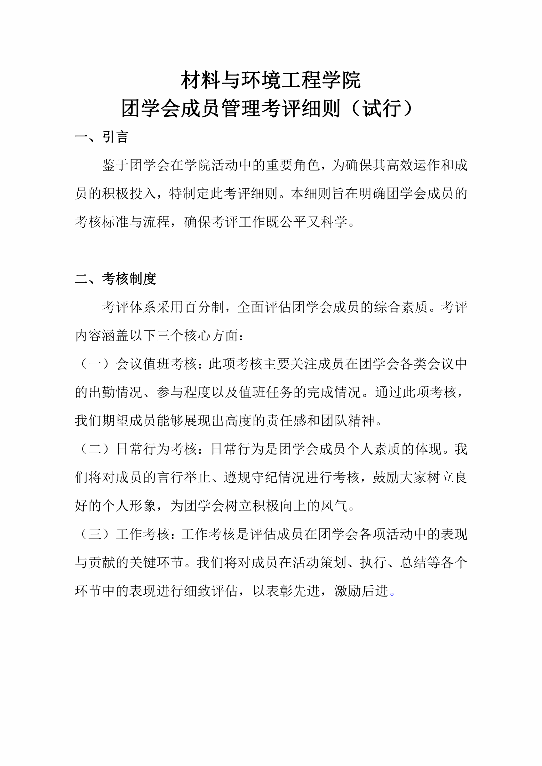 材料与环境工程学院团学会成员管理考评细则(试行)
