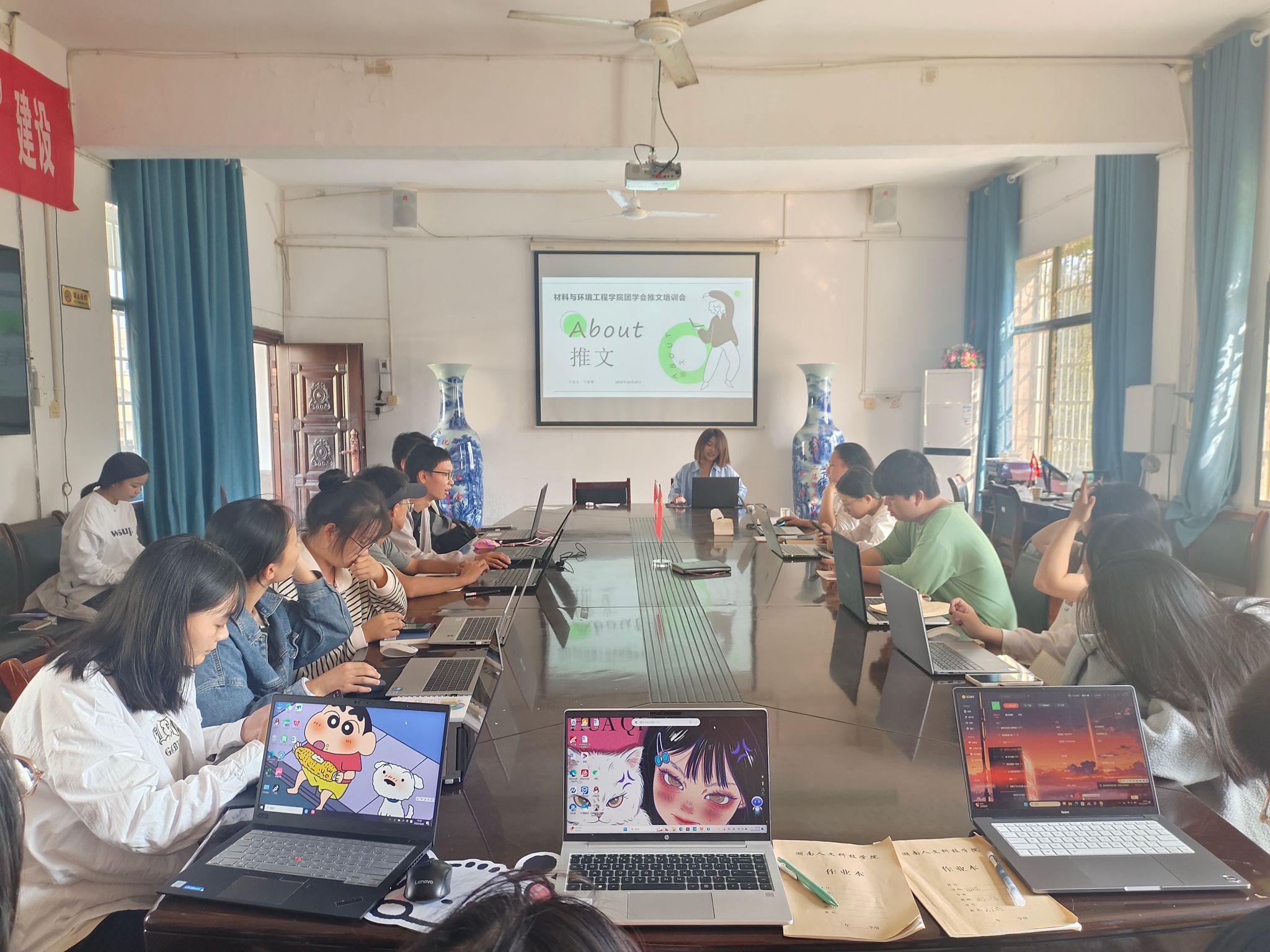 为进一步规范材料与环境工程学院学院宣传工作,提高工作人员推文编辑排版、拍摄技术的和新闻稿撰写能力,材料与环境工程学院学院团学会于10月至11月组织开展了宣传工作技能培训会。团总支书记李璐玢、团总支副书记王睿博、易班总站拍摄剪辑组部长郑子康、原院宣传部部长雷雯雯,23级团学会志愿者参会。