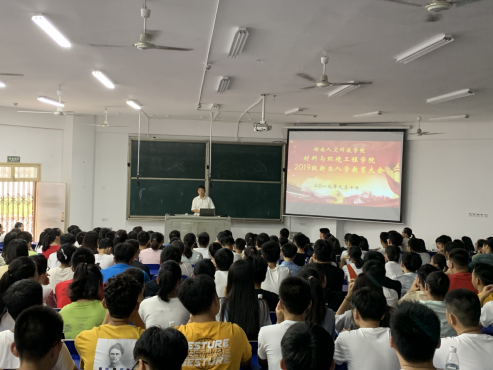 为使2019级新生对自己的大学生活和专业有更深的了解和认识,引导其树立正确的目标,9月10日上午,材料与环境工程学院举办了2019级新生入学教育大会,参加会议的有党总支书记刘志成、院长杨道武、党总支副书记李星奇、副院长胡继林、辅导员、新生班主任及2019级全体新生,党总支副书记李星奇主持会议。