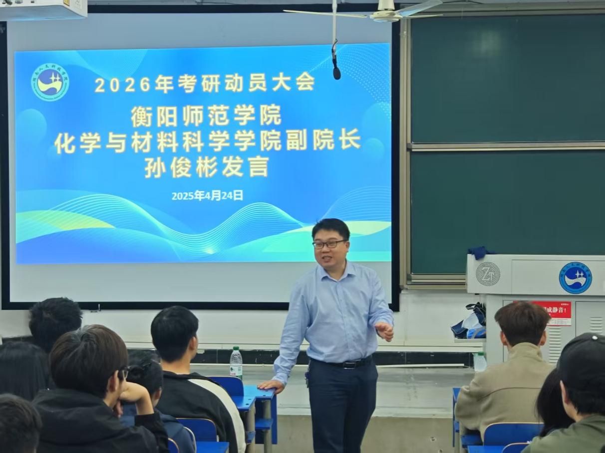 2025年4月24日上午,材料与环境工程学院于致远楼220成功召开“以梦为马,逆风翻盘”2026年考研动员大会。本次会议邀请了KY开元集团官网入口招生就业处副处长陈佩君、衡阳师范学院化学与材料科学学院副院长孙俊彬出席,材料与环境工程学院副院长陈红军、考研班班主任秦飞老师及百余名学生共同参与。会议由陈红军副院长主持。
