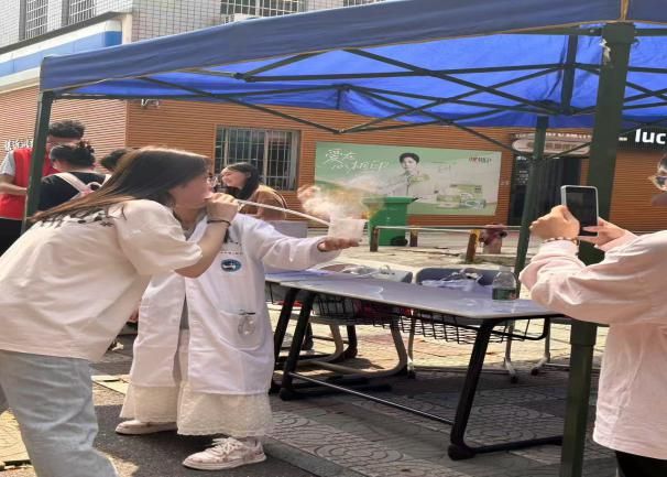 活动当天,现场人头攒动。在知识竞答区,同学们踊跃参与环保知识和雷锋知识主题问答,不少同学凭借丰富的知识储备赢得了小奖品;在分享交流区,志愿者们配合老照片展陈,再现雷锋同志生平事迹,“螺丝钉精神”在交流中深入人心;在科普实验区,面粉爆炸实验成为亮点,实验人员将面粉放置于特定装置,待扬起的面粉与空气充分混合后,绽放的耀眼火花给同学们带来了强烈的震撼。