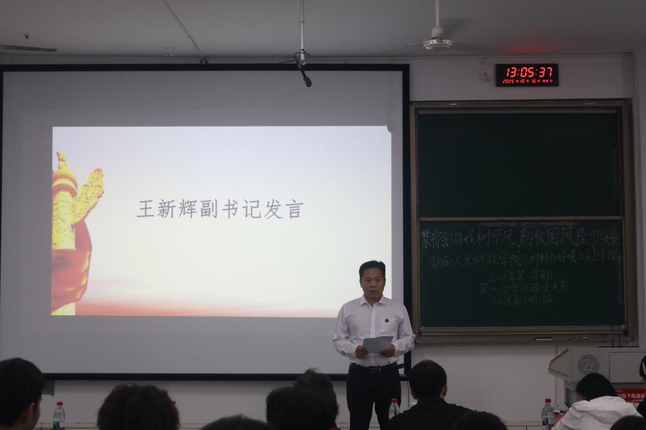 2025年10月16日中午,材料与环境工程学院于致远楼119召开2025年下学期第一次学风建设大会。材料与环境工程学院党总支书记钟勇、党总支副书记王新辉及全体辅导员老师出席此次会议。23级至25级各班班长、团支书、学委及其他班委代表和团学会全体成员参会。学习实践部柏申晴子主持此次会议。