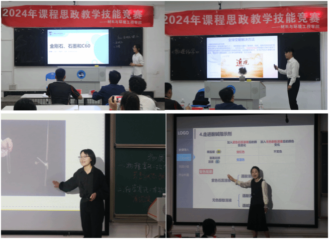 为了让同学们体验教学的乐趣,充分展现大学生的专业才能和准教师风范,促进教育教学实践与理论的结合,发现和培育一批优秀的教学人才,材料与环境工程学院于2024年5月成功举办思政课程教学技能竞赛。