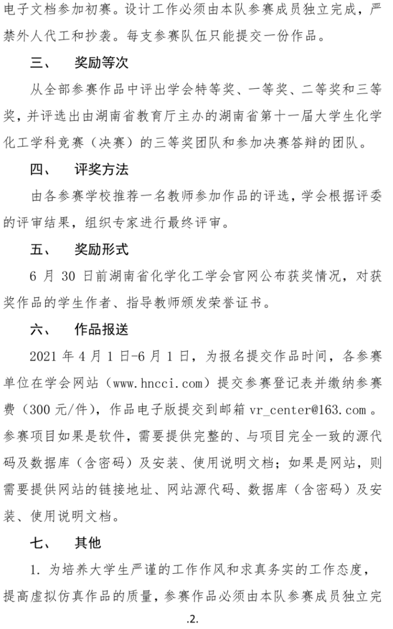 湖南省2021年大学生竞赛通知(创新作品、化工设计、虚拟仿真)