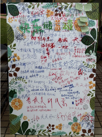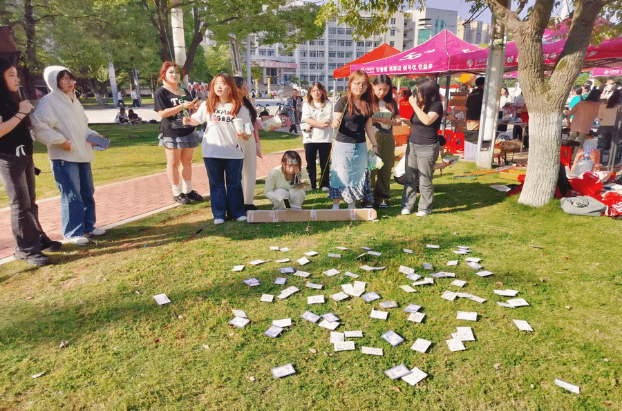 活动以“烦恼池塘”为载体,巧妙地将参与者的情绪具象化。同学们纷纷拿起纸笔,或是低头沉思,将近期的学业压力、生活困惑细细写下;或是嘴角带笑,把生活中的小确幸、暖心瞬间认真记录,随后小心翼翼地将这些承载着情绪的纸条投入池中。通过“垂钓”的方式,他们随机选择“带走”或“留下”这些情绪纸条。活动中,池塘里预先埋藏的“快乐鱼”为参与者带来了不少惊喜,这些“快乐鱼”承载着积极语录和他人分享的暖心小事,传递着正能量。同学们在轻松愉快的氛围中,不仅释放了压力,还收获了满满的温暖与感动。