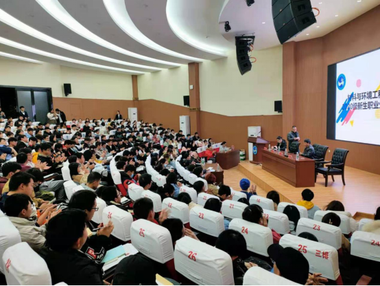 12月6日(周日)晚上21:30,材料与环境工程学院举办的2020级“职业生涯规划”课程第二次课在匠成楼报告厅召开。主讲本次课程的有材环院副院长胡继林,20级全体新生听课。