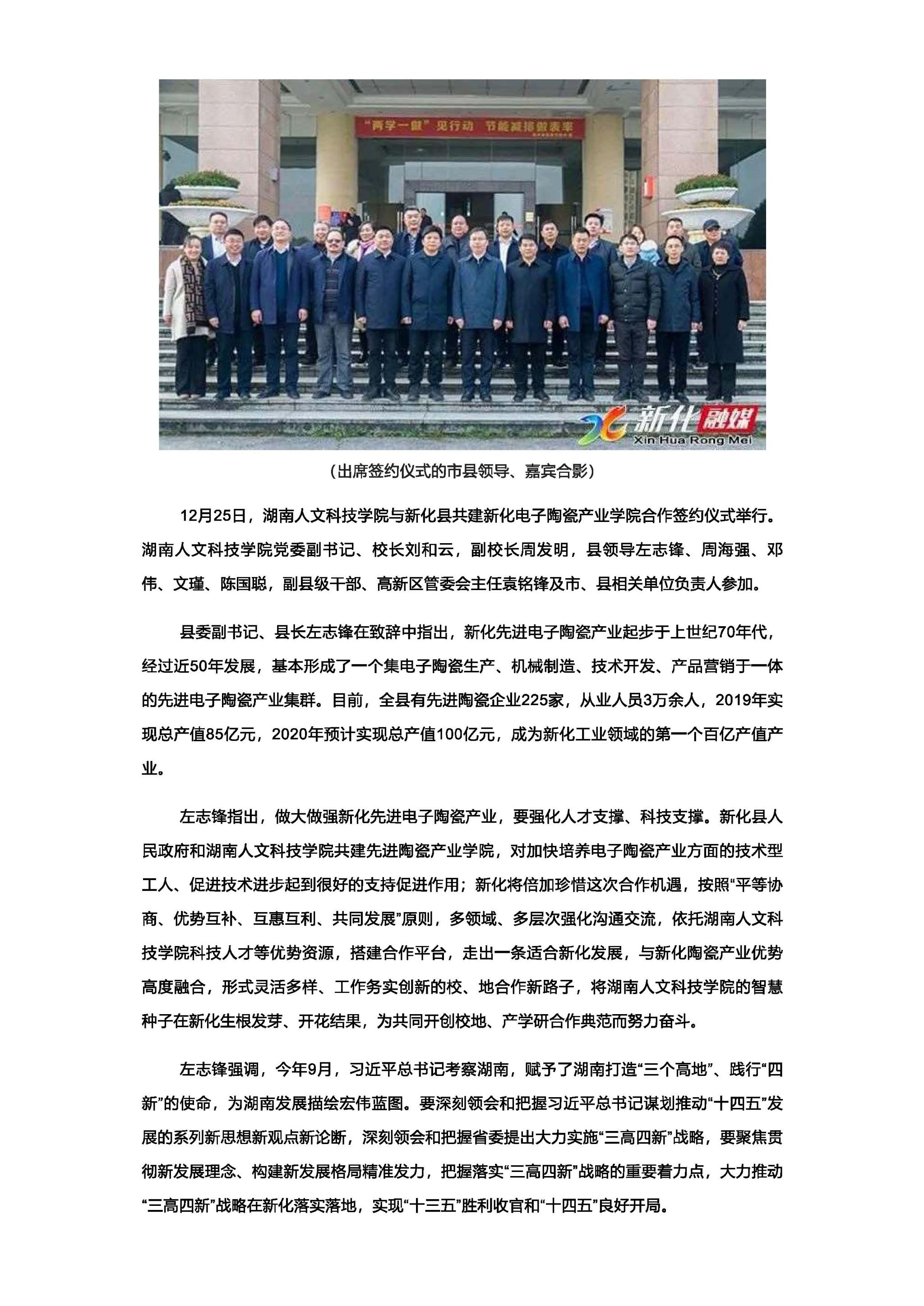KY开元集团官网入口与新化县共建先进陶瓷产业学院合作签约仪式举行