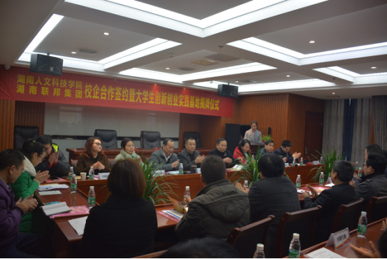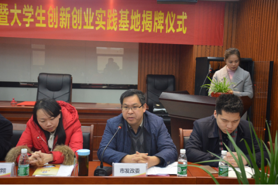市发改委谢耀初科长在讲话中指出,人文科技学院积极探索教育改革、探索创新创业思路,这就需要整体上很好的平台,而联邦集团是一个非常优秀的、综合性的、专业化服务的平台,双方的互补性很强、合作的空间很大。在今后的工作中要进一步解放思想、开拓思维,为娄底的大学生创新创业做出榜样。作为职能部门,在政策、资金、谋划上充分发挥发改委的作用,为你们保驾护航。