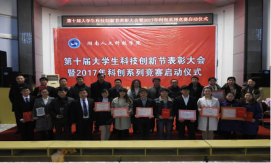 12月20日晚,第十届大学生科技创新节表彰大会暨2017年科创系列竞赛启动仪式在匠成楼报告厅隆重举行,副校长石潇纯,副校长周发明、副校长陈志国、副校长刘铁峰,教务处、科研处、研究生处、宣传部、评建办、团委、创新创业学院等部门负责人,各二级学院党政负责人、分管创新创业工作领导、创新创业专干,科创系列赛事评委、获奖师生代表,校级学生组织代表近500人参加了大会。创新创业学院彭晓华院长主持会议。
