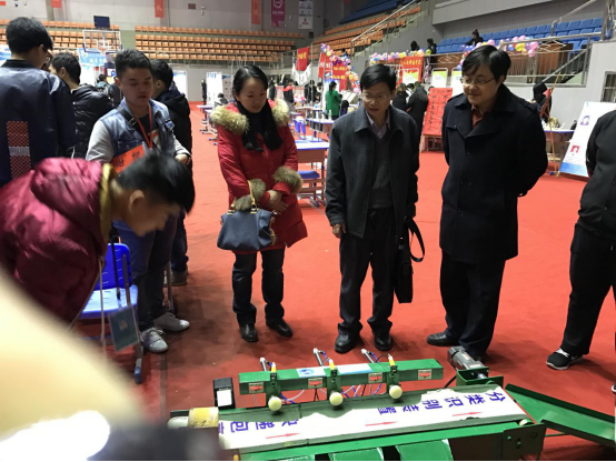 石潇纯副校长在观看能机学院二维码识别包裹自动分炼机