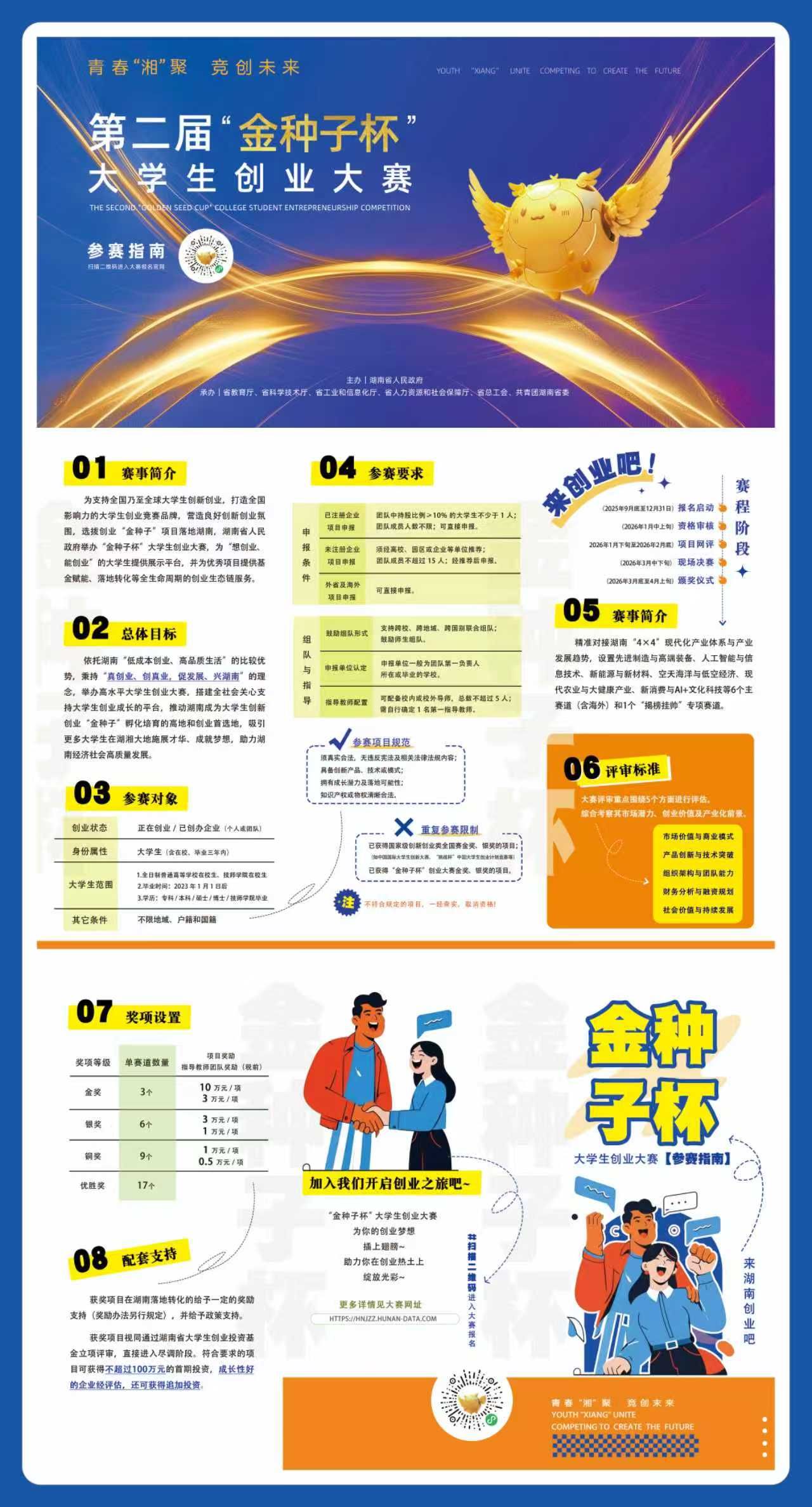 为深入贯彻习近平总书记关于青年就业创业工作的重要指示精神,落实湖南省委、省政府关于支持大学生创新创业的部署要求,根据“金种子杯”大学生创业大赛组委会办公室《关于举办第二届“金种子杯”大学生创业大赛的通知》的要求,推动KY官网大学生创新创业教育工作深入开展,现就参加该赛事的有关事项通知如下。