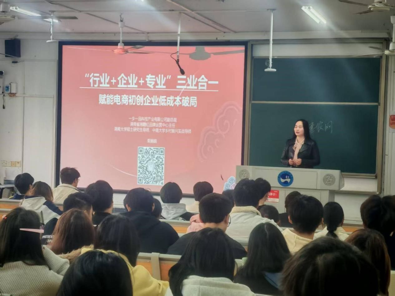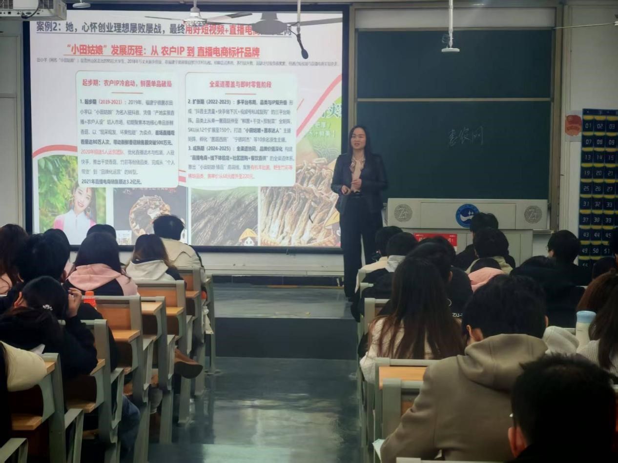 11月27日下午,致远楼509教室座无虚席、气氛热烈。《电商创业理论与实践》课程班及2024级电子商务专业全体同学齐聚一堂,聆听一乡一品科技有限公司副总裁柴娟娟女士带来题为《“行业+企业+专业”三业合一,赋能电商初创企业低成本破局》的精彩分享。