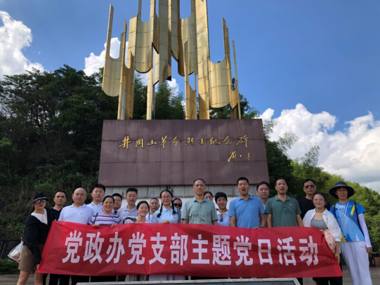 为纪念中国共产党成立102周年,深入开展学习贯彻习近平新时代中国特色社会主义思想主题教育,激发党员政治热情,增强党员荣誉感、责任感、使命感, 7月10日、7月11日,党政办党支部围绕“一月一课一片一实践”组织全体党员、入党积极分子赴井冈山开展“庆七一、忆初心、强党性”主题党日活动。党委书记刘铁铭以普通党员身份参加。