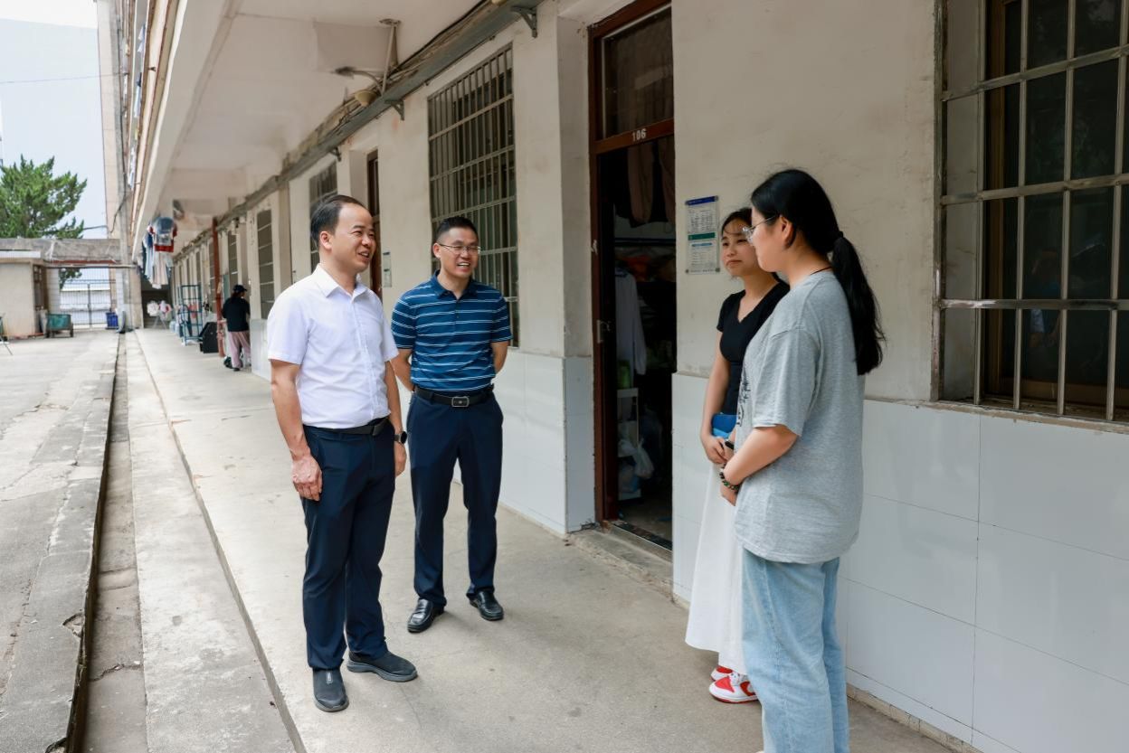 检查期间,校领导与暑期留校学生亲切交谈,了解他们的学习安排和生活情况,叮嘱同学们要合理安排假期时间,既要专注学业研究,也要注意防暑降温,做到劳逸结合。要求学校相关部门务必做好留校学生的后勤服务与保障工作。