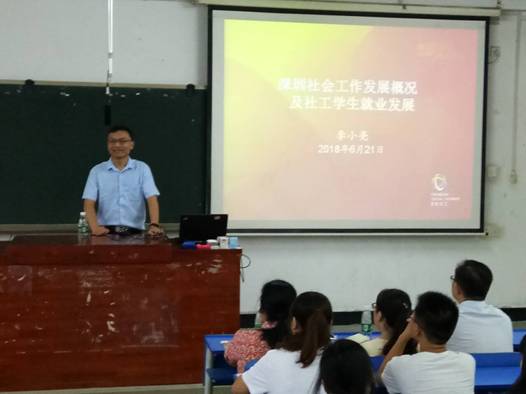 2017年6月21日上午10点,深圳彩虹社工总干事李小亮、副院长王秋香、书记尹钟宏、罗玲老师、刘惠婷老师和金晶老师及学生代表在致远楼209开展了关于社会工作专业发展的座谈会。