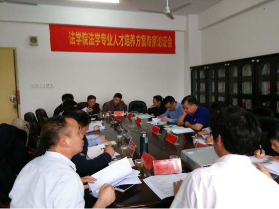 5月24日下午,KY官网在致远楼308会议室举行了2016版人才培养方案论证会。出席会议的指导专家有娄底市中院民一庭庭长郭超群、娄星区法院政治部主任刘继红、市检察院政策研究室副主任唐燕、娄底人和人律师事务所主任罗伯武、副校长周发明、纪委书记杨鑫铨、产学研中心主任黎建辉。法学院党政领导、法学专业部分教师参加了本次会议,会议由院长朱耀斌教授主持。