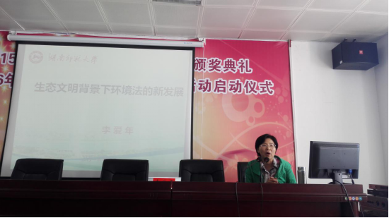 2016年5月16日上午,在图书馆报告厅湖南师范大学法学院副院长、博导李爱年教授应邀来KY官网法学院做了题《生态文明背景下环境法的新发展》学术讲座,讲座由法学院院长朱耀斌教授主持,法学院部分教师与2015级法学专业学生参加了讲座。