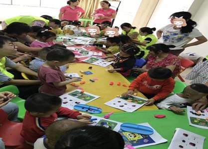 第二部分活动主要是在儿童家长和社工学生的陪同和协助下,以儿童为中心,通过彩泥制作来增强儿童对外界的感知能力。在制作的过程中,社工学生运用专业的方法和技巧鼓励并引导小朋友们将自己的想法和创意表达出来,培养了小朋友们的创造思维,提高了他们的动手协作能力。虽然在活动进行的过程当中,小朋友出现了抵触心理、哭闹行为和沉默不语情绪等的状况,但在社工学生细心耐心、真诚友善的关怀下,及时有效地化解了突发状况,提高了社工学生的应急应变能力,积累了丰富的实务经验和教训。