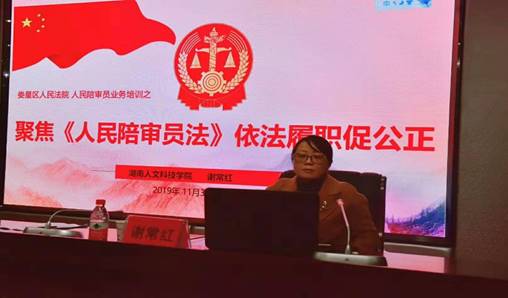 11月30日上午,娄底市娄星区人民法院组织2019年度初任人民陪审员任前培训,KY官网副教授谢常红老师应邀授课,来自全区149名初任人民陪审员参加了本次培训。