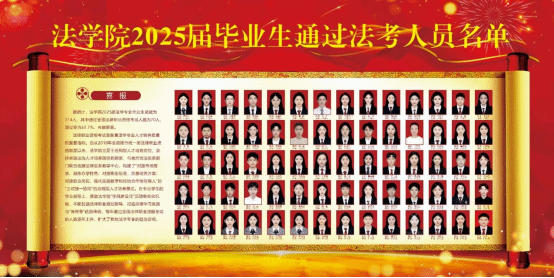 学生发展。本专业毕业生连续三年就业率保持较高位,涵盖法院、检察院、行政机关、法律服务机构和金融机构等。2024届和2025届法学专业毕业生分别有12人、15人被录为公务员。法学专业学生法律职业资格考试通过率一直位列全省高校前列,2024年有70人通过全国法律职业资格考试,占学生总数的32.71%。法学专业学生2023年获得湖南省第七届大学生模拟法庭竞赛季军。