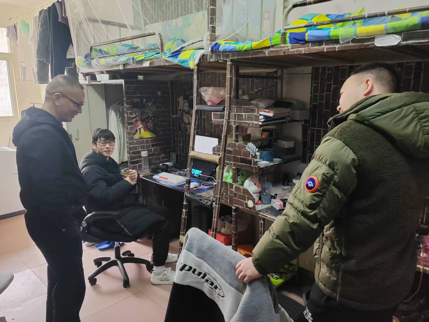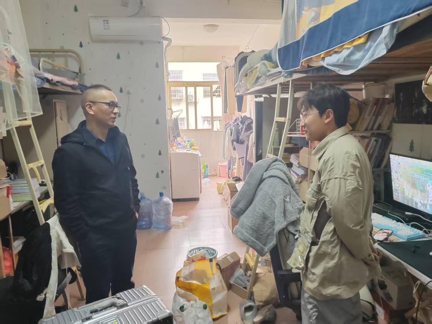 为精准掌握毕业生就业动态,破解求职过程中的实际问题,3月17日,法学院党总支书记肖兵明与辅导员杨珀琨走进学生宿舍,围绕就业议题与毕业生展开"面对面"交流。