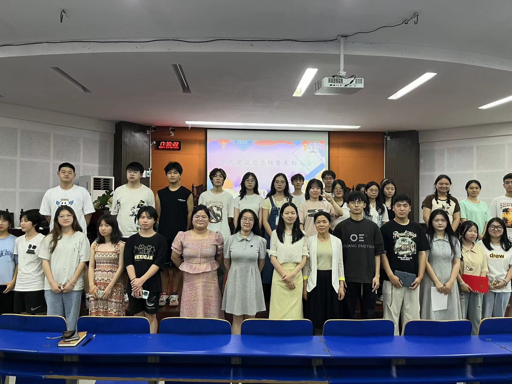 学院学工办主任陈玲对开展学风建设月活动取得的扎实成效表示肯定,并强调应建立完善学风建设长效机制,营造学院优良学风氛围。随后,老师们为学风建设月获奖者颁奖并合影留念。