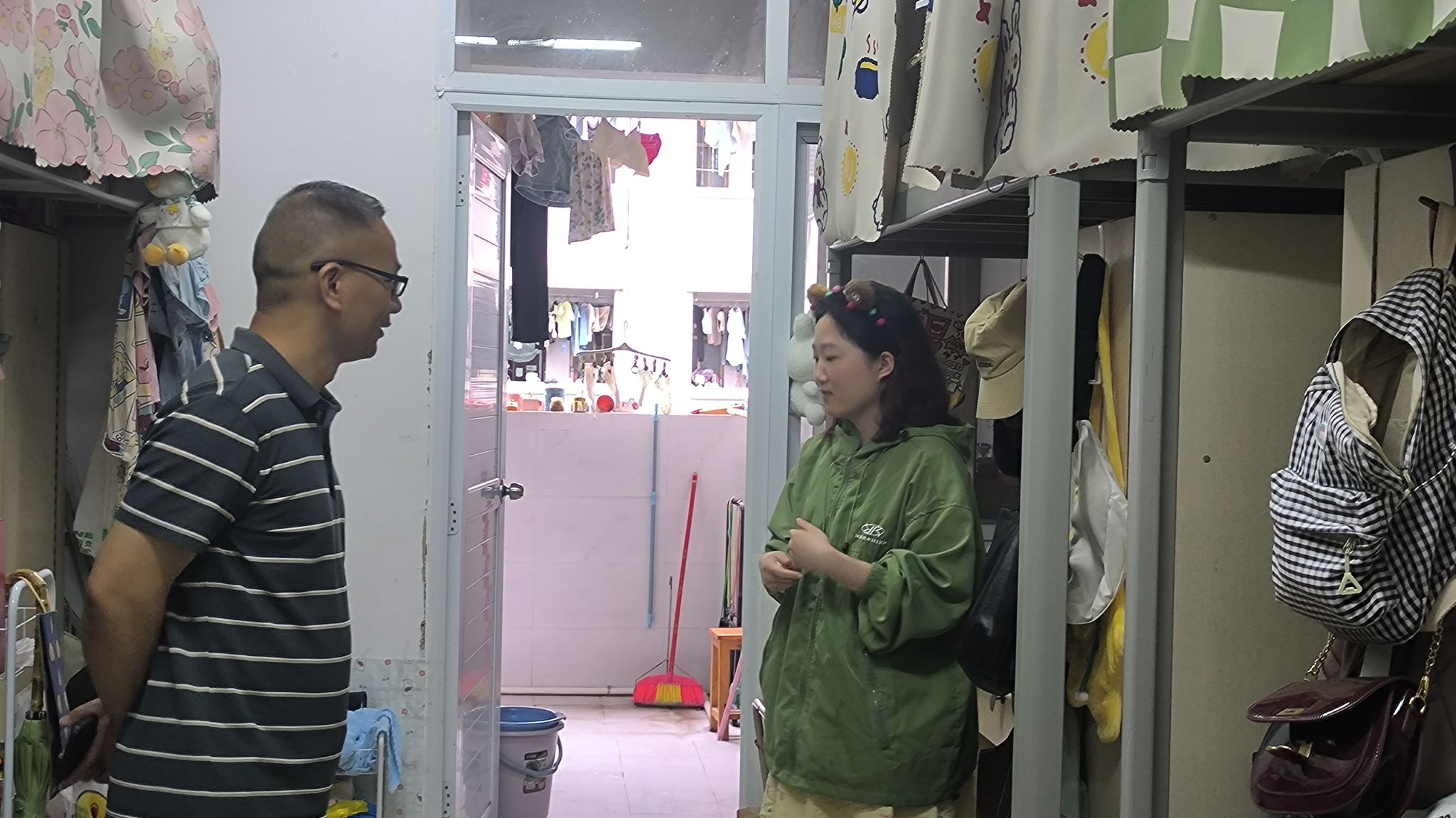 在走访过程中,老师们首先对各个寝室的安全隐患进行了排查,强调了严禁使用违规电器,注意用水用电安全。临近期末,同学们纷纷进入复习状态,老师们向亲切地询问了他们的复习进度,叮嘱同学们注意劳逸结合,保持良好的睡眠。同时,针对暑假申请留校的同学,老师们仔细询问了其留校的具体原因,并告诫同学们注意安全,有任何问题及时联系班主任。最后,老师们向同学们强调离校后个人贵重物品要及时带走,关闭门窗保障寝室财产安全,并提醒同学们暑期也要谨防电信诈骗,避免财产损失。