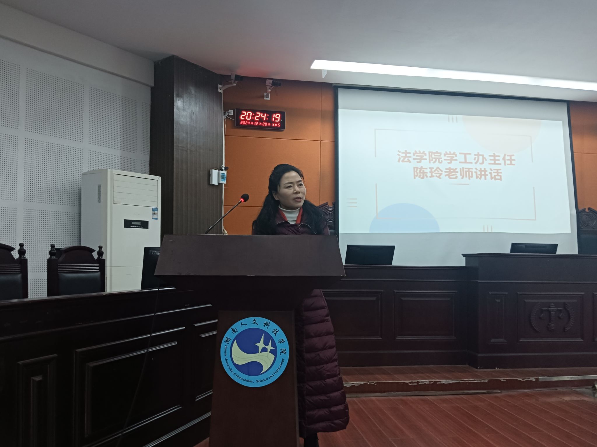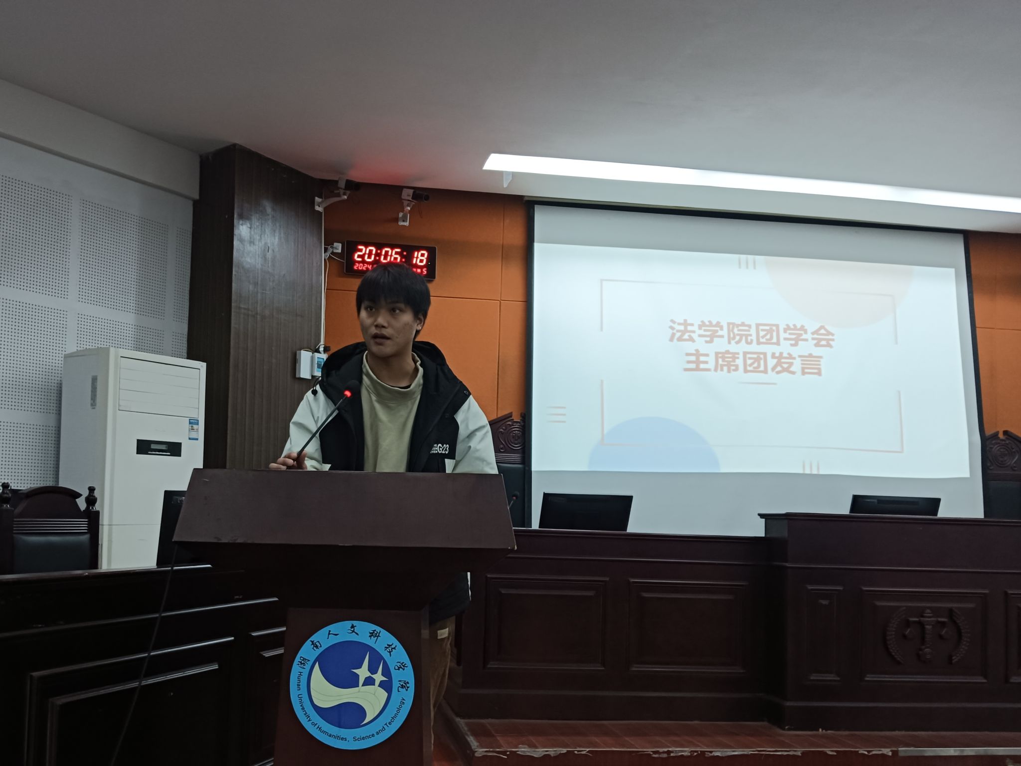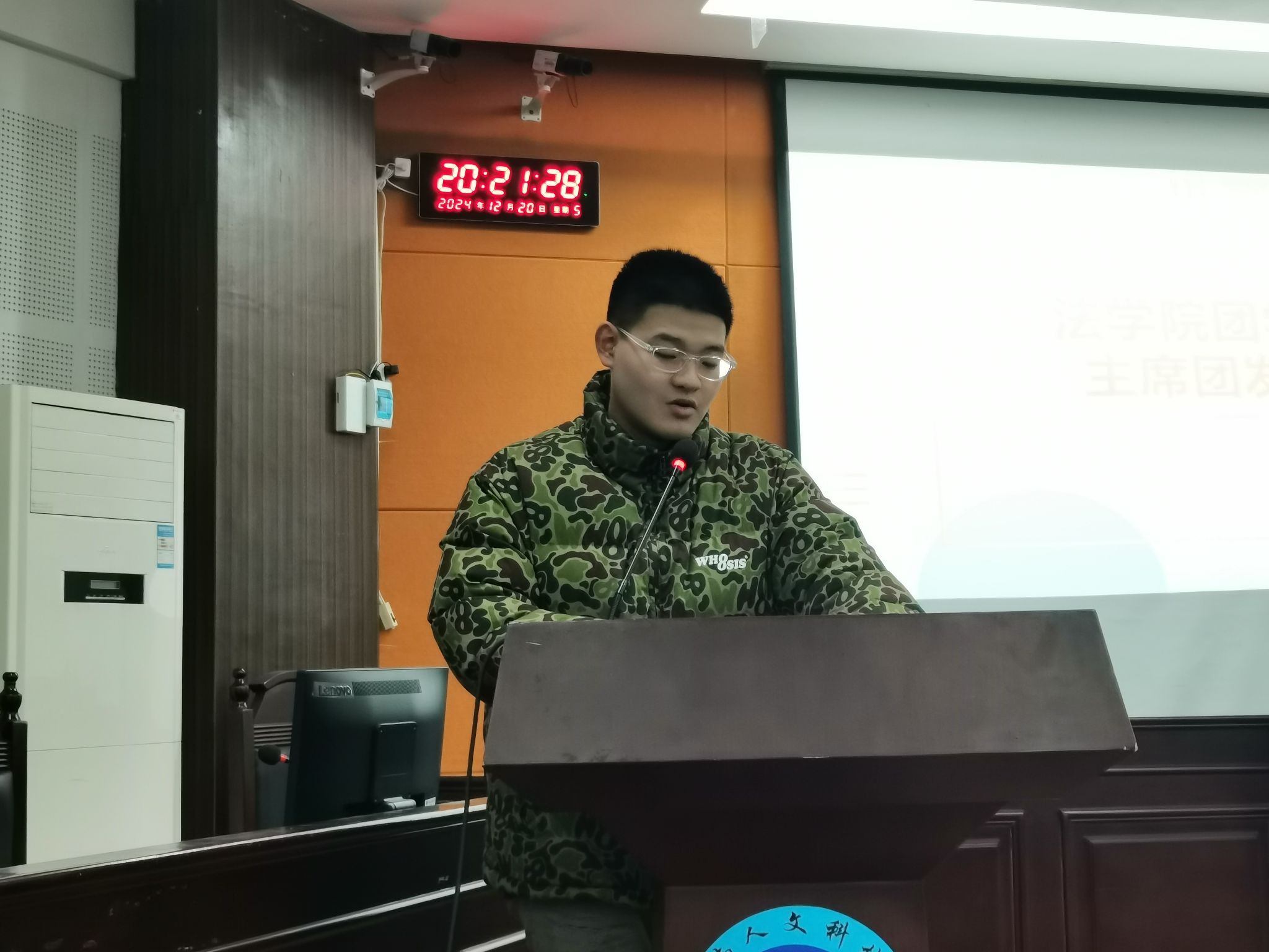 12月20日晚,法学院于致远楼202教室召开团学会学期总结大议。法学院学工办主任陈玲、辅导员羊哲思、彭蓉及全体团学会成员参与此次会议。