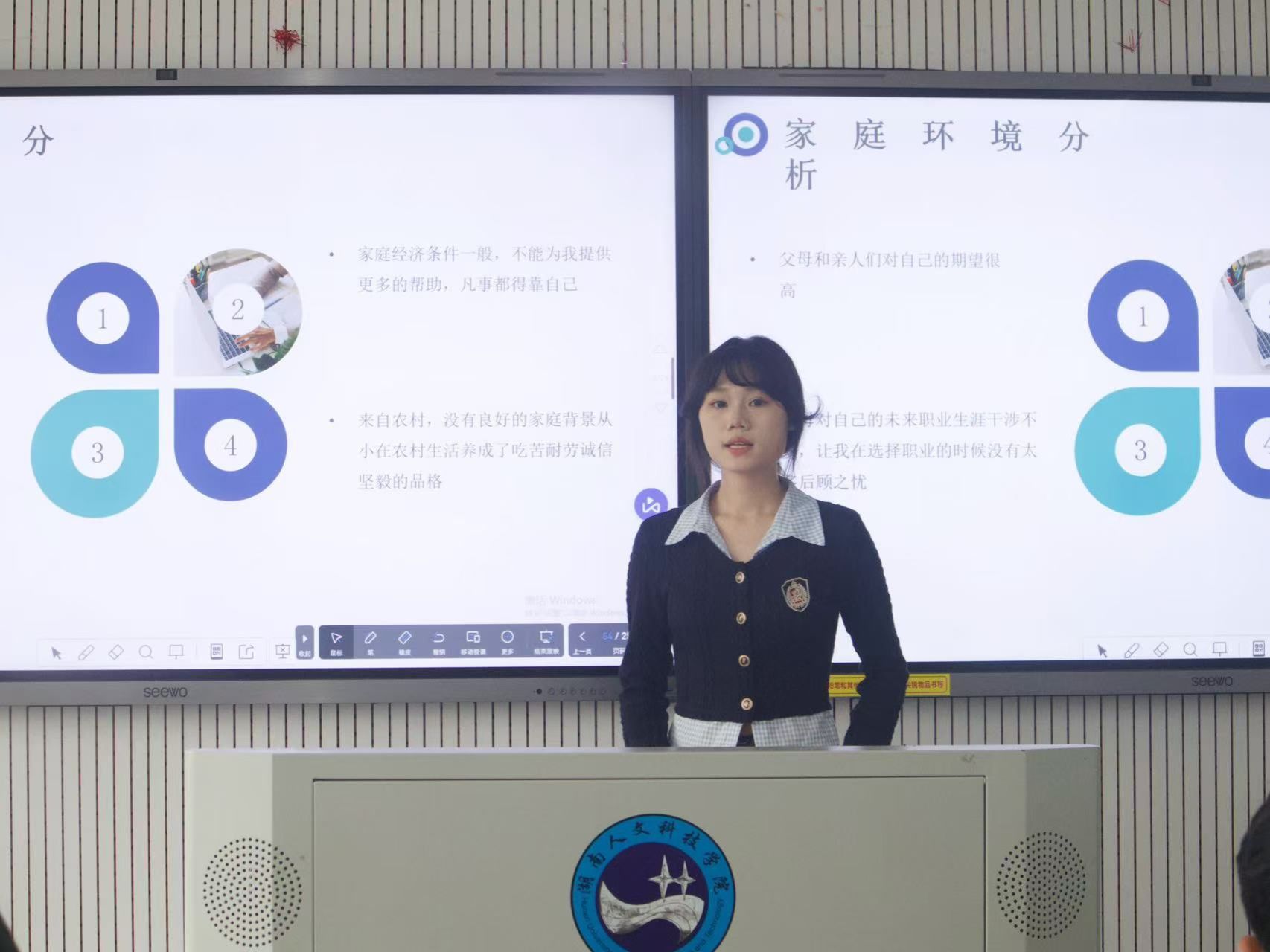 比赛现场气氛热烈,参赛选手们依次上台,通过精美的PPT展示和生动的演讲,阐述自己对未来职业生涯的规划。每一位选手的规划都展现出了他们对未来职业和生活的无限憧憬。评委们认真聆听,从规划的合理性、目标的明确性、可行性以及表达能力等多个方面进行评分。在问答环节,评委们还针对选手的规划提出了建设性的意见和建议,帮助选手们进一步完善自己的职业规划。