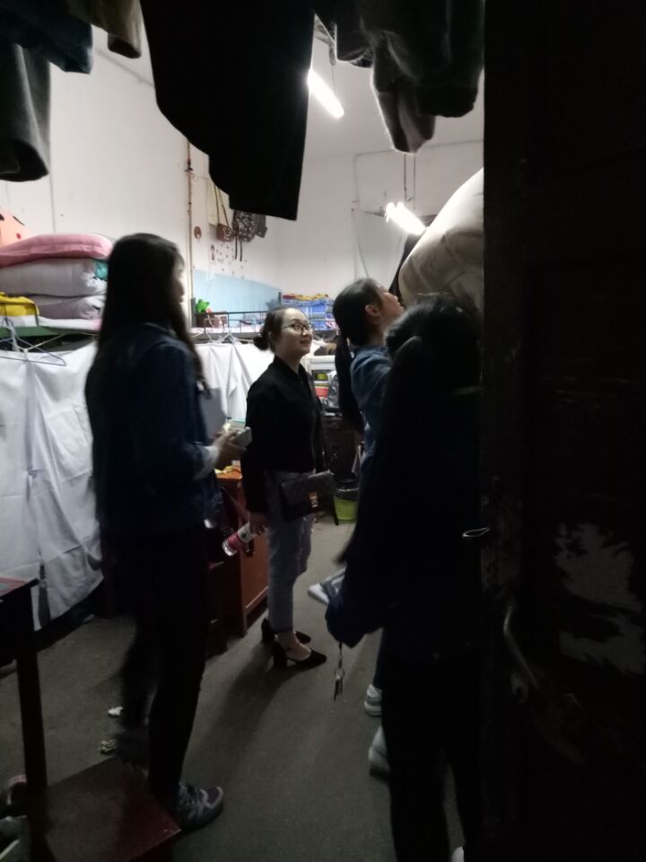 走访过程中,老师对绝大多数宿舍的卫生状况加以肯定,对不足也提出改进。热情询问同学们在宿舍生活中遇到的问题并提出解决方案,还不忘提醒同学们用电安全,让同学们添衣保暖注意别感冒了,保持室内通风、卫生干净。其中尹钟宏书记和谢琼、郭璐两位辅导员老师就大四的学姐们介绍了学校和院里的招聘会,以及5月中旬阿里巴巴集团关于国际电商做的一个人才培训讲座,希望学姐们能去参加,多了解一下。而学姐们基本都找好工作了,不过表示只要有时间还是会积极参与的。老师与同学们在交流的过程中有说有笑,少了陌生多了亲切。