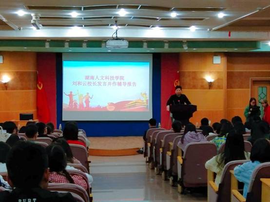 会上,校长刘和云用他生动直白的语言向大家做了辅导报告,强调了五四运动的重大意义,带领在场成员重温了习总书记在纪念五四运动一百周年大会上发表的重要讲话,深入分析了习总书记对青年提出的六点希望,并结合自身抒发了人生感悟,号召广大人文学子通过努力奋斗来建设国家。