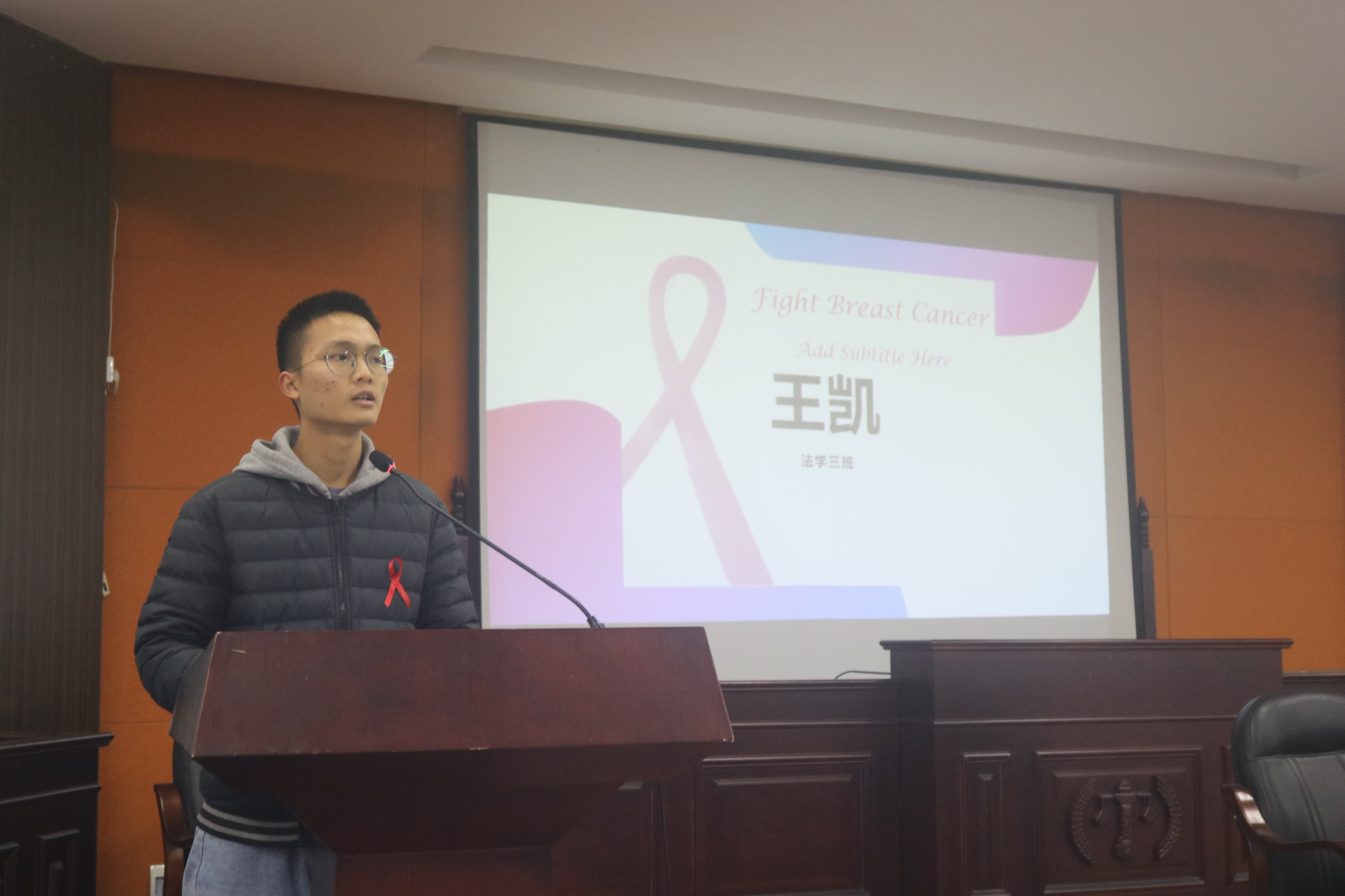 12月8日,法学院于致远楼202教室举办以“携手防疫防艾,共担健康责任”为主题的防艾演讲比赛决赛,此次演讲比赛旨在提高学生自觉防艾的社会责任意识,做到知艾防艾。本次演讲比赛由19级学生邓沪、邱为涛、黄睿、曾碧芳担任评委,20级全体学生参与。有罗七莲、曹颖琪、龙颜悦等八位选手将在此次比赛中决出优胜。