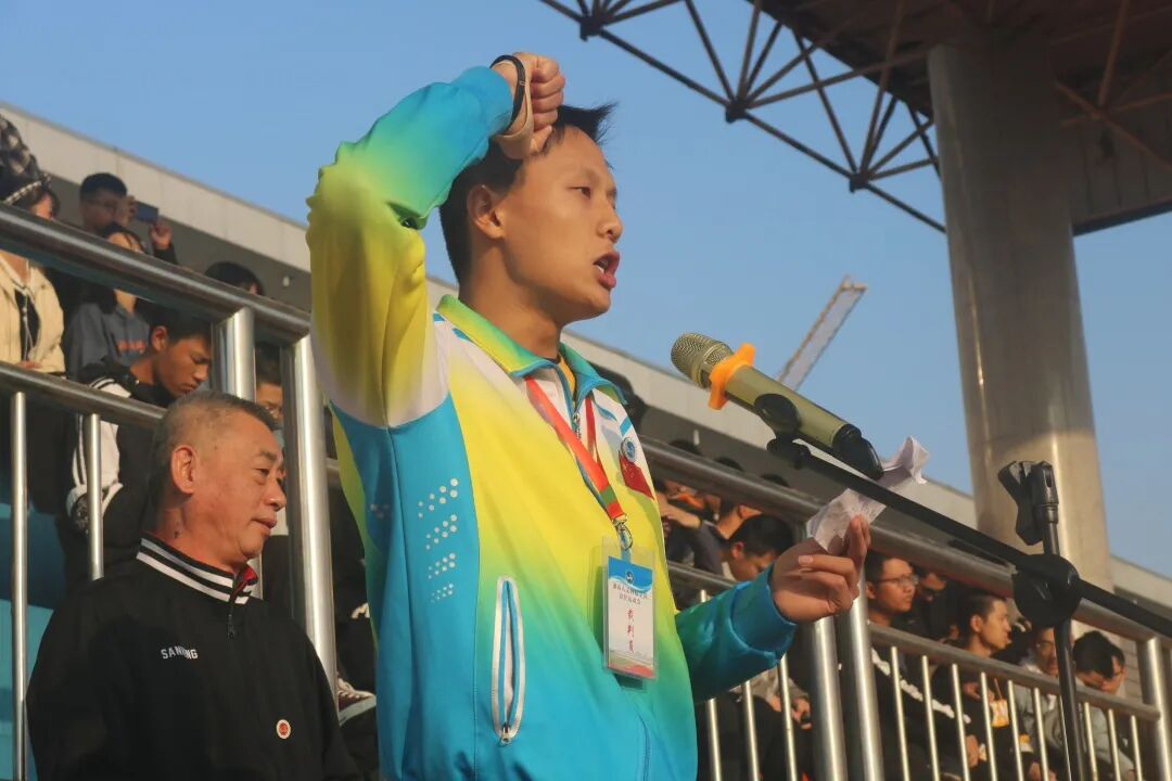 开幕式在庄严嘹亮的国歌声中拉开序幕。随后,裁判员代表王曦龙进行宣誓,他保证裁判员们会严肃认真地完成各项裁判工作,并预祝各代表队取得优异成绩,预祝本届运动会取得圆满成功。运动员代表黄鑫进行宣誓,他保证运动员们会服从指挥,遵守纪律和规则,尊重裁判与对手,在比赛中赛出风格,赛出水平。